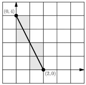 Let f(x, y) be the number of cells the line segment from (0, 0) to (x, y) passes through. The problem is then equivalent to finding