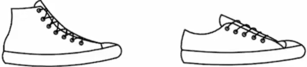 We first start by finding the amount of red and white sneakers. 3/5 * 15=9 red sneakers, so 6 are white sneakers. Then 2/3 * 15=10 are high top sneakers, so 5 are low top sneakers. Now think about 15 slots and the first 10 are labeled high top sneakers. if we insert the last 5 sneakers as red sneakers there are 4 leftover over red sneakers. Putting those four sneakers as high top sneakers we have our answer as C, or \boxed{\dfrac{4}{15}}.