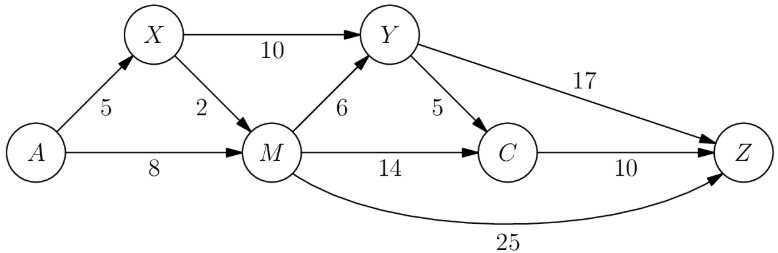 You can measure the lengths of the paths until you find a couple of guaranteed true inferred statements as such: Q is greater than S, P is greater than R, and R and P are the smallest two, therefore the order is R, P, S, Q. Thus we get the answer \boxed{\textbf{(D)}~R, P, S, Q}.