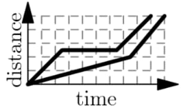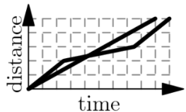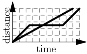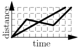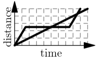First, the tortoise walks at a constant rate, ruling out . Second, when the hare is resting, the distance will stay the same, ruling out and . Third, the tortoise wins the race, meaning that the non-constant one should go off the graph last, ruling out . The answer is the only one left.