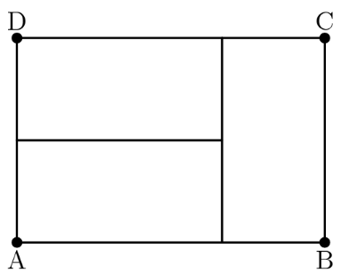 We can see that there are rectangles lying on top of the other and that is the same as the length of one rectangle. Now we know that the shorter side is , so the bigger side is , if we do . Now we get the sides of the big rectangle being and , so the area is .