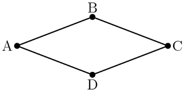 A rhombus has sides of equal length. Because the perimeter of the rhombus is , each side is . In a rhombus, diagonals are perpendicular and bisect each other, which means = = .