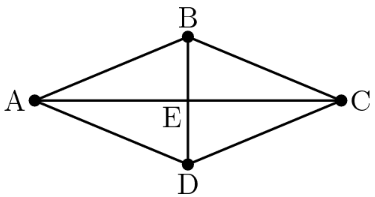 Lines of symmetry go through point , and there are directions the lines could go, and there are dots at each direction..