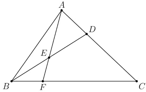 In triangle , point divides side so that . Let be the midpoint of and let be the point of intersection of line and line . Given that the area of is , what is the area of ?