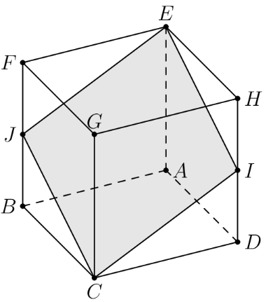 Note that is a rhombus by symmetry. Let the side length of the cube be . By the Pythagorean theorem, and . Since the area of a rhombus is half the product of its diagonals, the area of the cross section is . This gives . Thus, .
