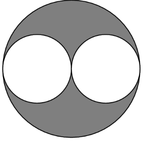 Let the radius of the two smaller circles be . It follows that the area of one of the smaller circles is . Thus, the area of the two inner circles combined would evaluate to which is . Since the radius of the bigger circle is two times that of the smaller circles (the diameter), the radius of the larger circle in terms of would be . The area of the larger circle would come to .