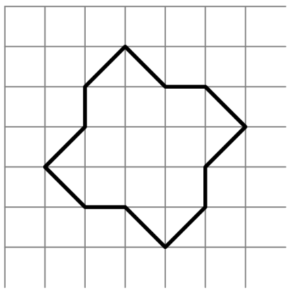 The twelve-sided figure shown has been drawn on graph paper. What is the area of the figure in ?