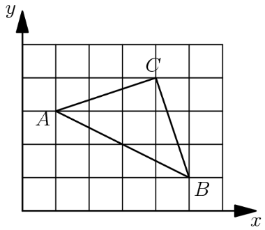 A triangle with vertices as A=(1,3), B=(5,1), and C=(4,4) is plotted on a 6\times5 grid. What fraction of the grid is covered by the triangle?