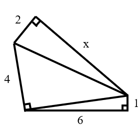 Since all three triangles in the figure are right triangles, we apply the Pythagorean theorem: