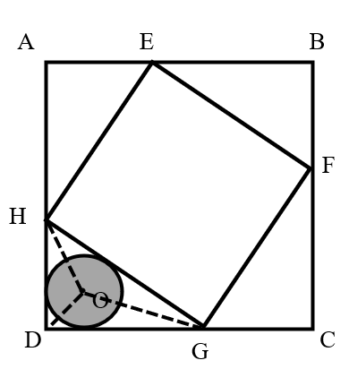 Given that the side length of square is and the side length of square is , and square has an inscribed circle , find the area of the circle.