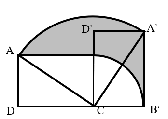 As shown in the figure, is a rectangle with length , width , and diagonal length . It is rotated clockwise around point . Find the area swept by side .(Take )