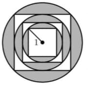 The area of the outer square is equal to the square of the diameter of the middle circle, which is . The square of the diagonal of the outer square is twice its area, so it is cm², which equals the square of the diameter of the outer circle.