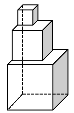 As shown in the figure below, three cubes with edge lengths of , , and are attached closely together. What is the surface area of the resulting three-dimensional figure in square centimeters?