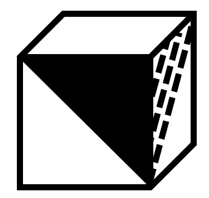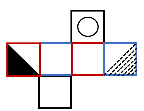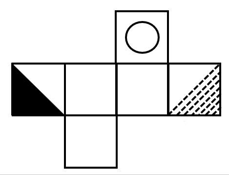 Based on the characteristics and positions of various symbols in the unfolded diagram, it is found that the black triangle and the slanted-line triangle should be adjacent faces with one side overlapping.