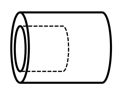 The total area to be painted includes the outer surface area of the cylinder, the inner surface area of the hole, and the area of the two circular bases (adjusted for the hole).