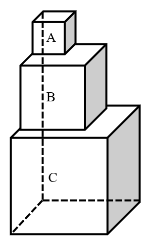 the bottom surface of cube , part of the top and bottom surfaces of cube , and part of the top surface of cube .