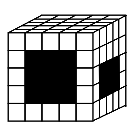 The first and fifth layers have no holes, and the volume of each layer is cubic centimeters.