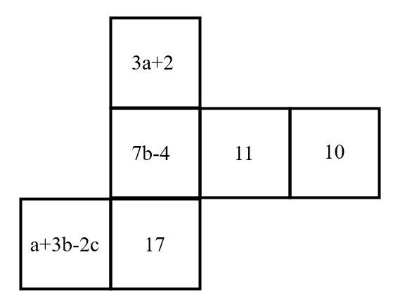 The following is a plane development diagram of a cube. If the values on the two opposite faces of the cube are equal, what is the value of ?
