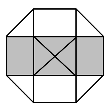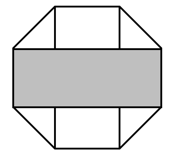 By means of division, the octagon is divided into 4 rectangles and 8 triangles.