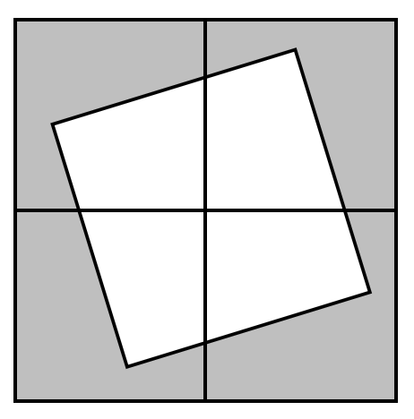 Therefore, the area of the shaded part accounts for \frac{1}{2} of the total area.