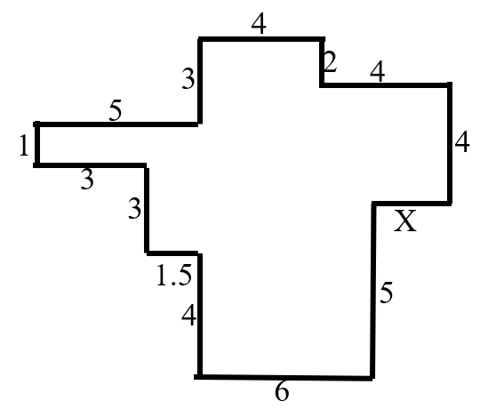 In the diagram, all angles are right angles and the lengths of the sides are given in centimeters.Note the diagram is not drawn to scale. What is the length in , in centimeters?