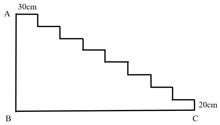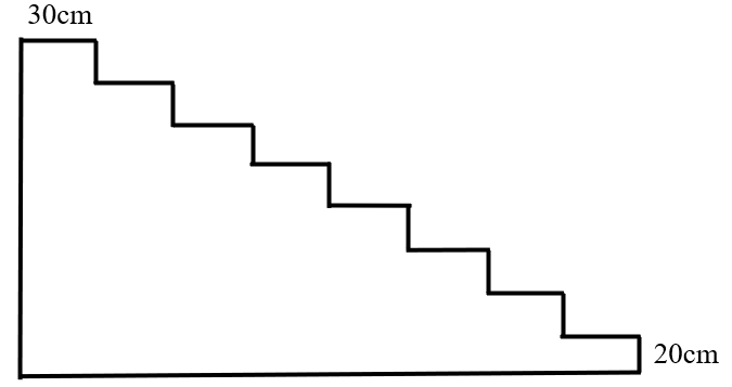 The following figure is a side view of a staircase. It is known that each step is wide and high. What is the perimeter of the side of this staircase in meters?