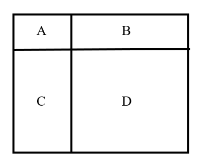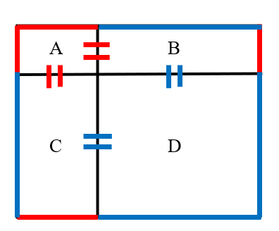 A rectangle is divided into four pieces. Given that the perimeter of piece is , the perimeter of piece is , and the perimeter of piece is , what is the perimeter of the large rectangle?