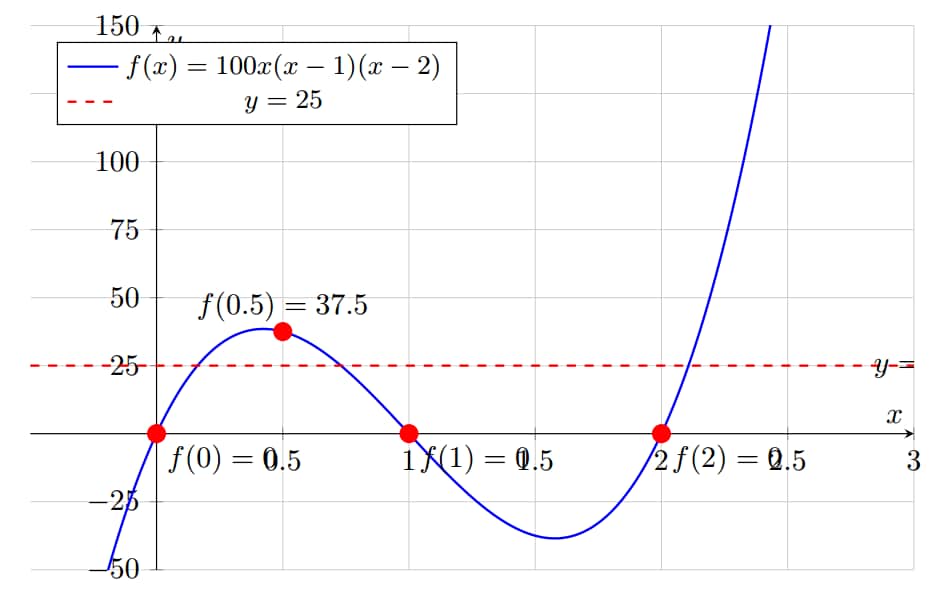 Since , we have . As the coefficient of is positive, we can draw the diagram of .