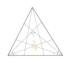 Notice that we count the equilateral with side length twice, so the combined total is triangles.