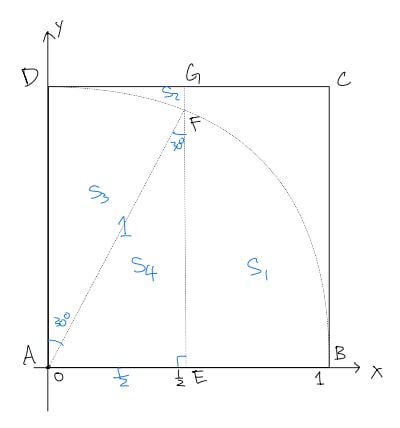 Point lies within the unit circle centered at and to the right of which is . This defines region .