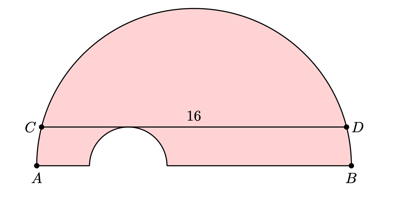 Let and denote the radii of the smaller and larger semicircles respectively.
