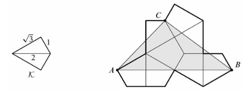 Let be the kite formed by joining two right triangles with legs and along a common hypotenuse. Eight copies of are used to form the polygon shown below. What is the area of triangle ? (2024 AMC 10A Problems, Question #22)