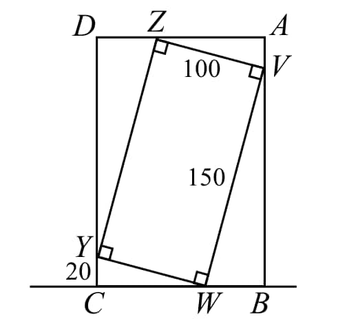 A rectangle with dimensions by is tilted so that one corner is above a horizontal line, as shown. To the nearest centimeter, determine the height of vertex above the horizontal line.