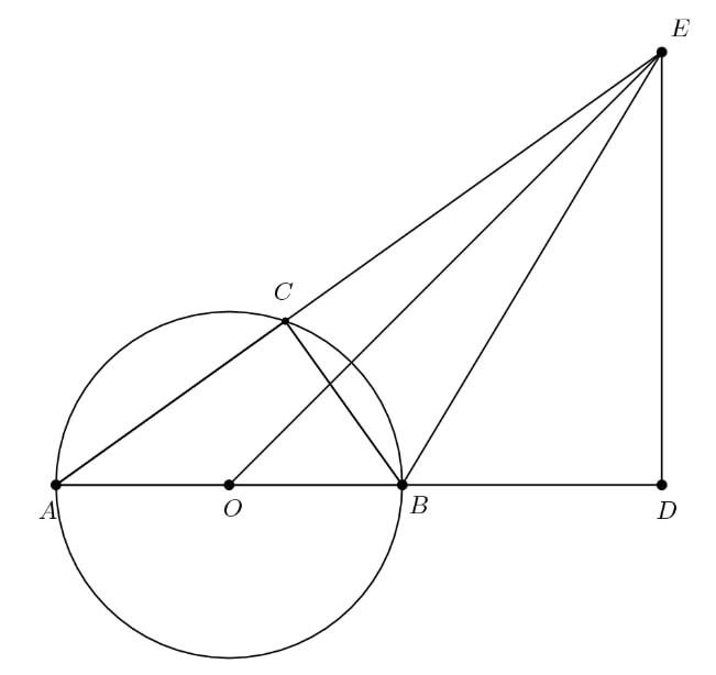 Note that is a right triangle because the hypotenuse is the diameter of the circle. Solving for area using the bases and , we get the area of triangle to be .